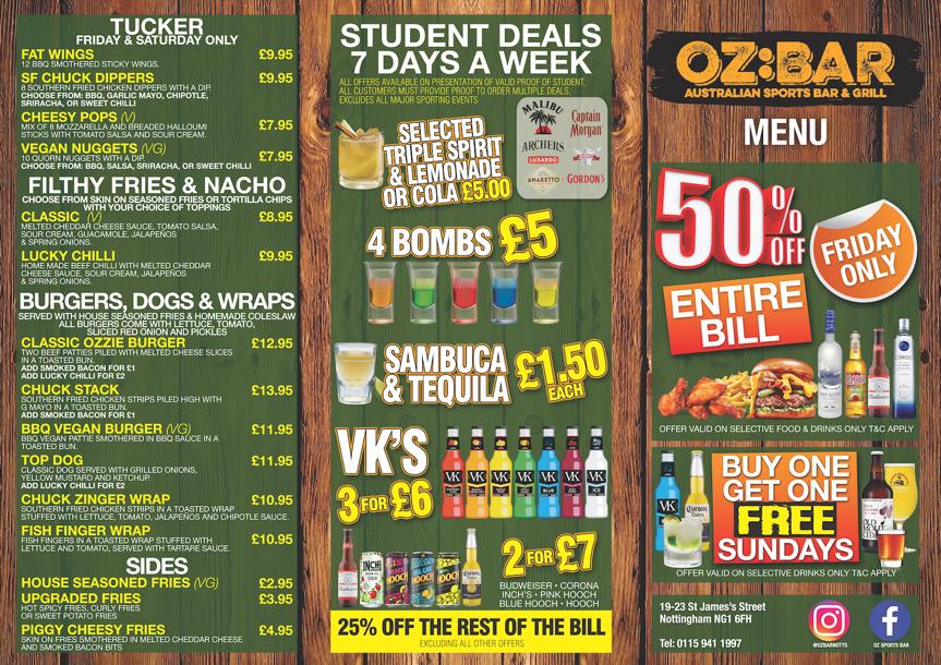 Oz Bar, a lively gem tucked away in the heart of Nottingham, stands as a favorite spot for both locals and visitors. The bar’s ambiance is a unique blend of modern chic and cozy charm, making it the perfect place for a night out, a casual gathering, or even a celebratory occasion. What truly elevates Oz Bar, however, is its diverse and thoughtfully curated menu that caters to a wide range of tastes and preferences.